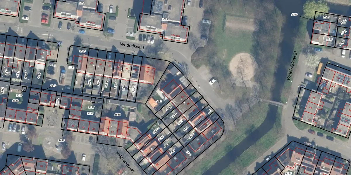 Wederikveld 42 is gelegen op kadastraal perceel WDN01D3011. Deze kadastrale aanduiding is uniek en wordt gebruikt door het Kadaster om eigendomsrechten en andere zakelijke rechten vast te leggen. Het perceel maakt onderdeel uit van de kadastrale gemeente Woerden.