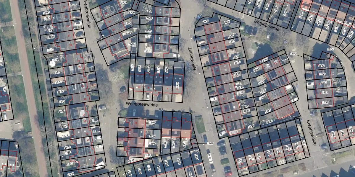Weegbreeweide 2 is gelegen op kadastraal perceel WDN01D1918. Deze kadastrale aanduiding is uniek en wordt gebruikt door het Kadaster om eigendomsrechten en andere zakelijke rechten vast te leggen. Het perceel maakt onderdeel uit van de kadastrale gemeente Woerden.