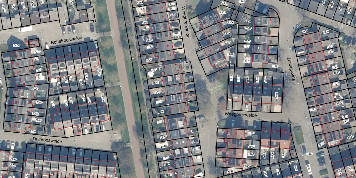 Gebruik de zoekbalk of klik op een perceel voor informatie over de adressen binnen dit perceel.
