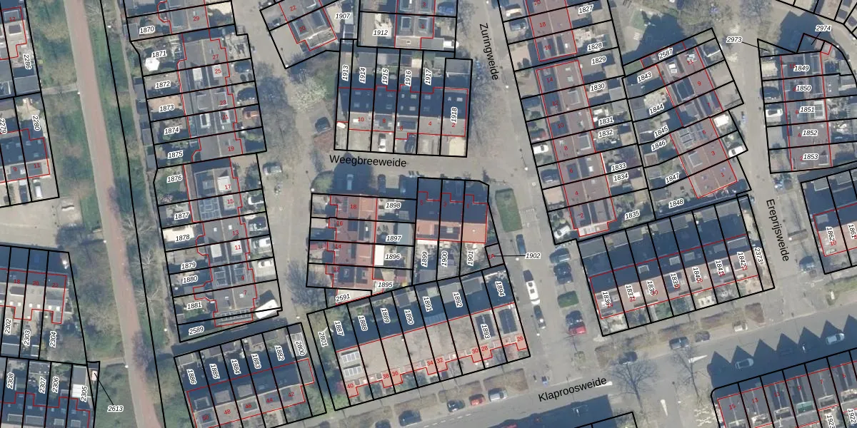 Weegbreeweide 5 is gelegen op kadastraal perceel WDN01D1899. Deze kadastrale aanduiding is uniek en wordt gebruikt door het Kadaster om eigendomsrechten en andere zakelijke rechten vast te leggen. Het perceel maakt onderdeel uit van de kadastrale gemeente Woerden.