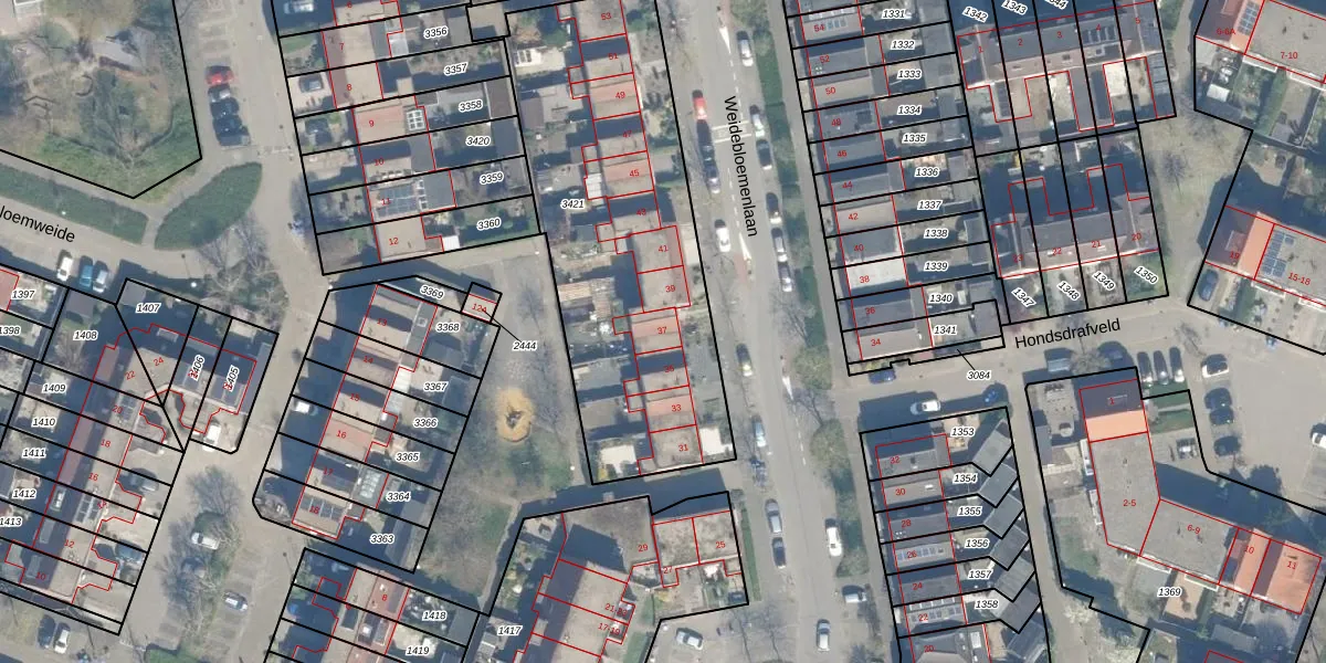 Weidebloemenlaan 37 is gelegen op kadastraal perceel WDN01D3421. Deze kadastrale aanduiding is uniek en wordt gebruikt door het Kadaster om eigendomsrechten en andere zakelijke rechten vast te leggen. Het perceel maakt onderdeel uit van de kadastrale gemeente Woerden.