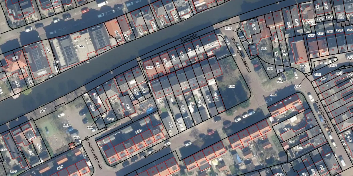Weteringstraat 12 is gelegen op kadastraal perceel WDN01B7226. Deze kadastrale aanduiding is uniek en wordt gebruikt door het Kadaster om eigendomsrechten en andere zakelijke rechten vast te leggen. Het perceel maakt onderdeel uit van de kadastrale gemeente Woerden.
