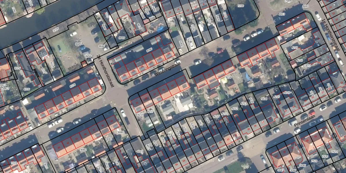 Het perceel waarop Weteringstraat 23 staat heeft een oppervlakte van 2225 m². Dit is een zeer groot perceel. De perceeloppervlakte wordt geregistreerd door het Kadaster. Gedetailleerde informatie over de maten van dit perceel kunt u vinden in het rapport Kadastrale kaart met maatvoering van Weteringstraat 23.
