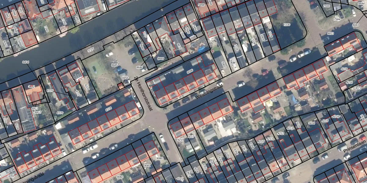 Het perceel waarop Weteringstraat 24 staat heeft een oppervlakte van 660 m². Dit is een groot perceel. De perceeloppervlakte wordt geregistreerd door het Kadaster. Gedetailleerde informatie over de maten van dit perceel kunt u vinden in het rapport Kadastrale kaart met maatvoering van Weteringstraat 24.