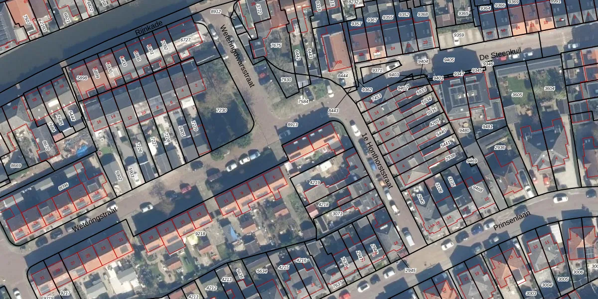 Het adres ligt op het perceel WDN01-B-9218, dat zich in de kadastrale gemeente Woerden bevindt. Het perceel is met 2225 m² relatief groot. Het gemiddelde ligt in de kadastrale gemeente Woerden op 1326,34 m². De grootste perceeloppervlakte in de kadastrale gemeente is 55,0 ha. De kleinste oppervlakte bedraagt 0 m². Er zijn 14 adressen aanwezig op het perceel. In de Basisregistratie Kadaster (BRK) werden de grenzen van het perceel geregistreerd op 09-03-2016.