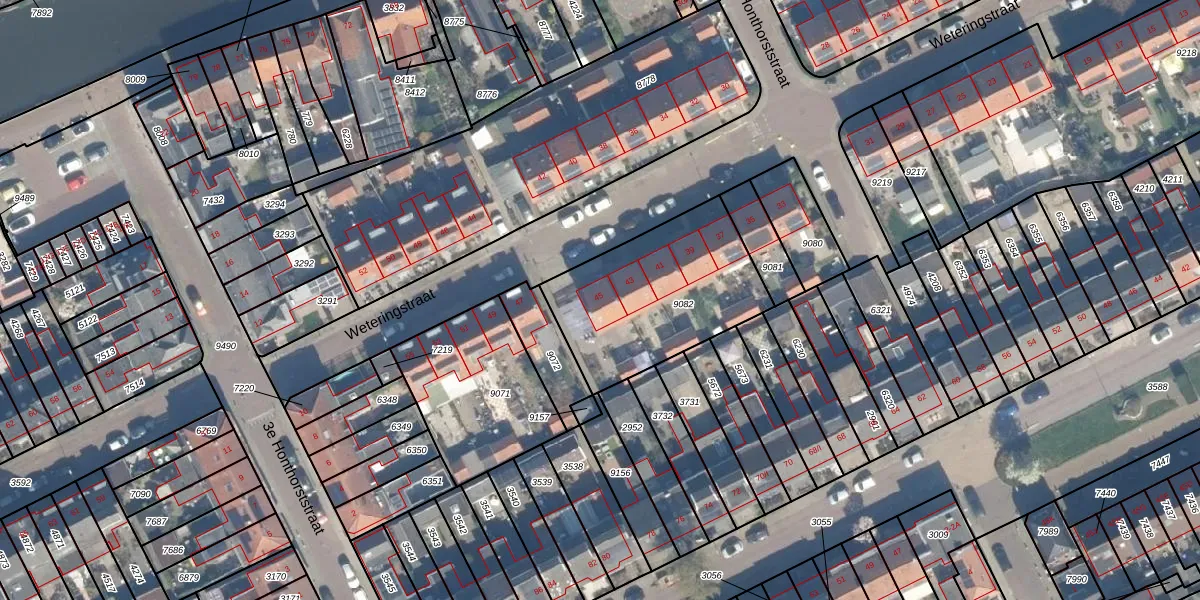 Weteringstraat 45 is gelegen op kadastraal perceel WDN01B9082. Deze kadastrale aanduiding is uniek en wordt gebruikt door het Kadaster om eigendomsrechten en andere zakelijke rechten vast te leggen. Het perceel maakt onderdeel uit van de kadastrale gemeente Woerden.