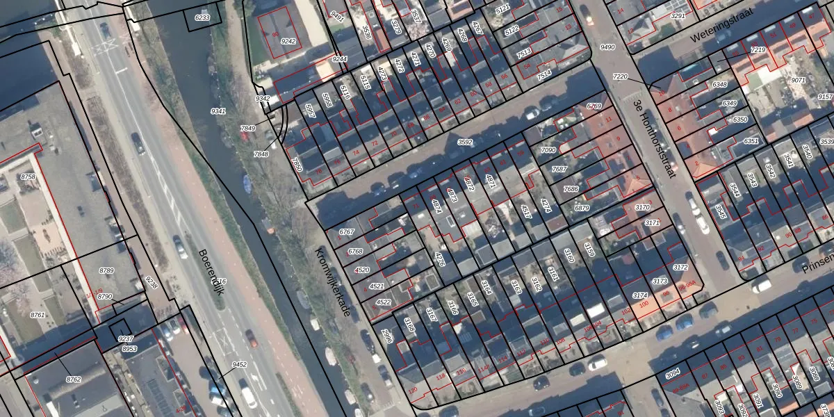 Gebruik de zoekbalk of klik op een perceel voor informatie over de adressen binnen dit perceel.