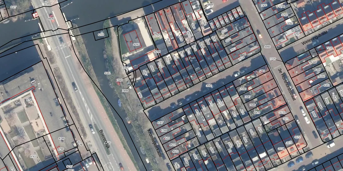Gebruik de zoekbalk of klik op een perceel voor informatie over de adressen binnen dit perceel.