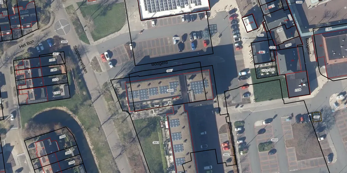 Het perceel waarop Boogerd 2-E staat heeft een oppervlakte van 810 m². Dit is een groot perceel. De perceeloppervlakte wordt geregistreerd door het Kadaster. Gedetailleerde informatie over de maten van dit perceel kunt u vinden in het rapport Kadastrale kaart met maatvoering van Boogerd 2-E.