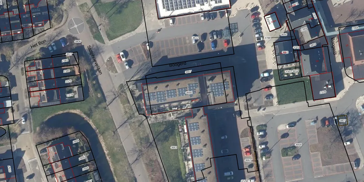 Het perceel waarop Boogerd 2-F staat heeft een oppervlakte van 810 m². Dit is een groot perceel. De perceeloppervlakte wordt geregistreerd door het Kadaster. Gedetailleerde informatie over de maten van dit perceel kunt u vinden in het rapport Kadastrale kaart met maatvoering van Boogerd 2-F.