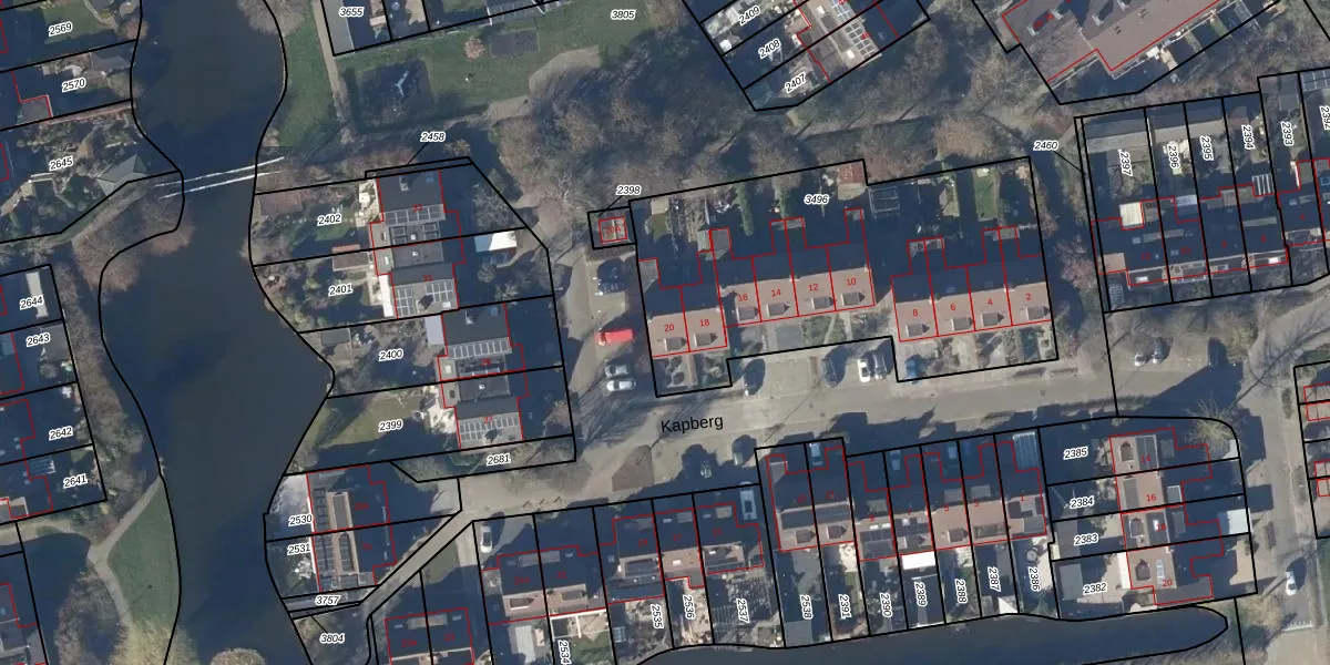 Het perceel waarop Kapberg 20 staat heeft een oppervlakte van 1735 m². Dit is een zeer groot perceel. De perceeloppervlakte wordt geregistreerd door het Kadaster. Gedetailleerde informatie over de maten van dit perceel kunt u vinden in het rapport Kadastrale kaart met maatvoering van Kapberg 20.