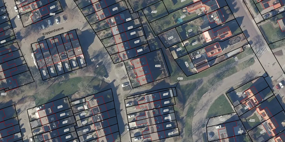Het perceel waarop Koppenhoeve 72 staat heeft een oppervlakte van 570 m². Dit is een groot perceel. De perceeloppervlakte wordt geregistreerd door het Kadaster. Gedetailleerde informatie over de maten van dit perceel kunt u vinden in het rapport Kadastrale kaart met maatvoering van Koppenhoeve 72.