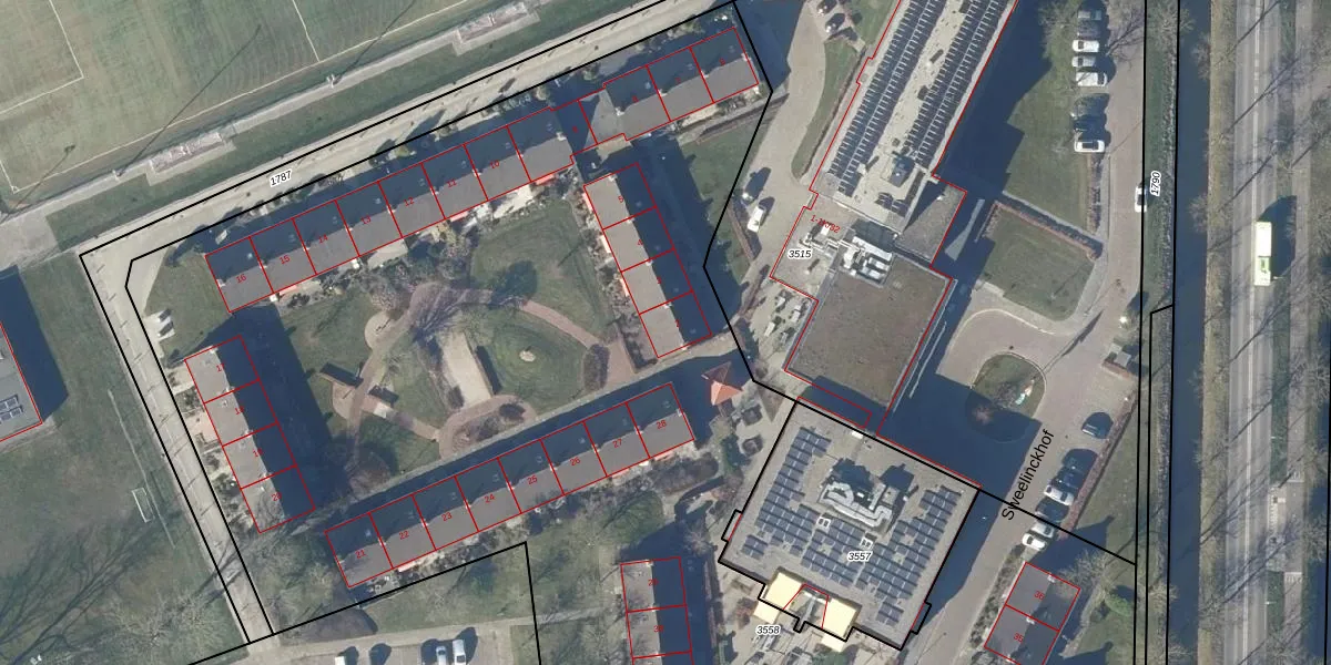 Het perceel waarop Sweelinckhof 2 staat heeft een oppervlakte van 9152 m². Dit is een zeer groot perceel. De perceeloppervlakte wordt geregistreerd door het Kadaster. Gedetailleerde informatie over de maten van dit perceel kunt u vinden in het rapport Kadastrale kaart met maatvoering van Sweelinckhof 2.