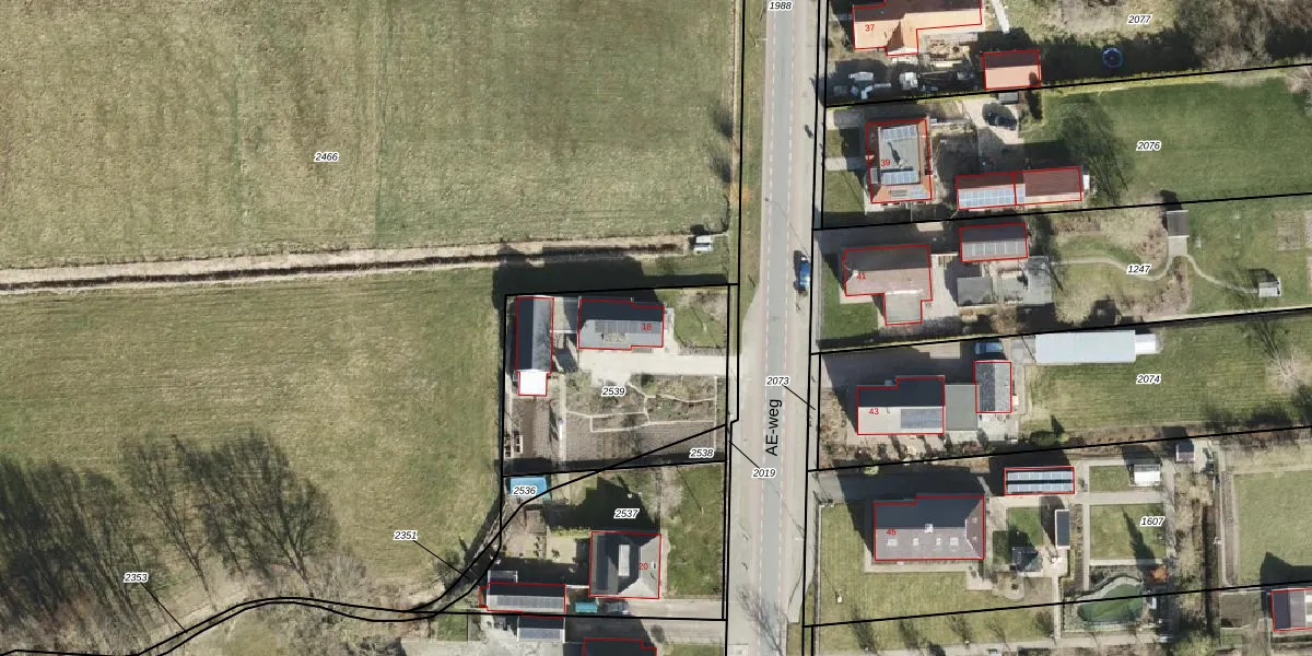 Het perceel waarop AE-weg 18 staat heeft een oppervlakte van 869 m². Dit is een groot perceel. De perceeloppervlakte wordt geregistreerd door het Kadaster. Gedetailleerde informatie over de maten van dit perceel kunt u vinden in het rapport Kadastrale kaart met maatvoering van AE-weg 18.