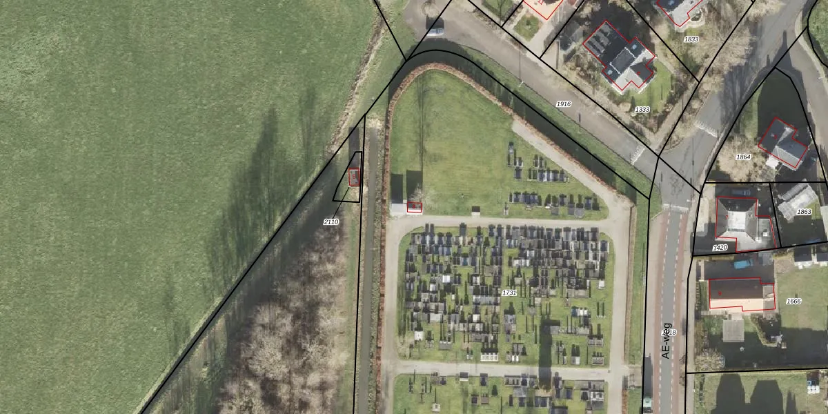 Het perceel waarop AE-weg 8 staat heeft een oppervlakte van 7340 m². Dit is een zeer groot perceel. De perceeloppervlakte wordt geregistreerd door het Kadaster. Gedetailleerde informatie over de maten van dit perceel kunt u vinden in het rapport Kadastrale kaart met maatvoering van AE-weg 8.
