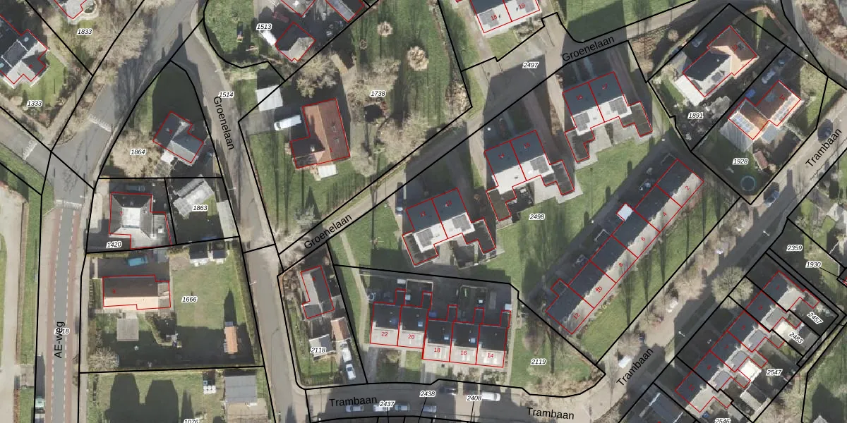 Het perceel waarop Groenelaan 12 staat heeft een oppervlakte van 3580 m². Dit is een zeer groot perceel. De perceeloppervlakte wordt geregistreerd door het Kadaster. Gedetailleerde informatie over de maten van dit perceel kunt u vinden in het rapport Kadastrale kaart met maatvoering van Groenelaan 12.