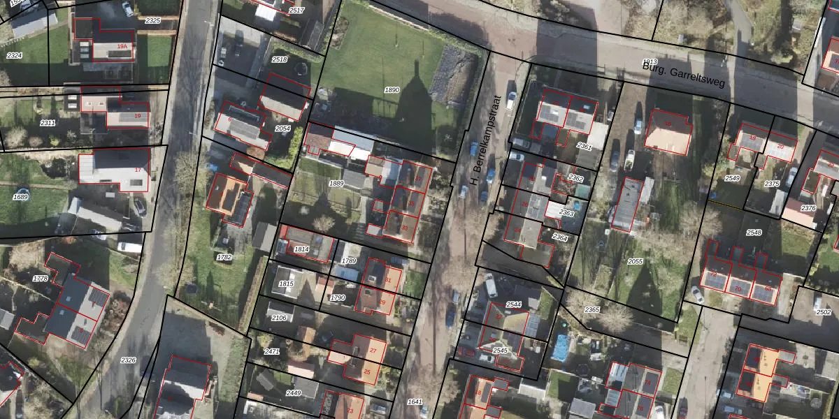 Het perceel waarop H. Berrelkampstraat 35 staat heeft een oppervlakte van 915 m². Dit is een groot perceel. De perceeloppervlakte wordt geregistreerd door het Kadaster. Gedetailleerde informatie over de maten van dit perceel kunt u vinden in het rapport Kadastrale kaart met maatvoering van H. Berrelkampstraat 35.