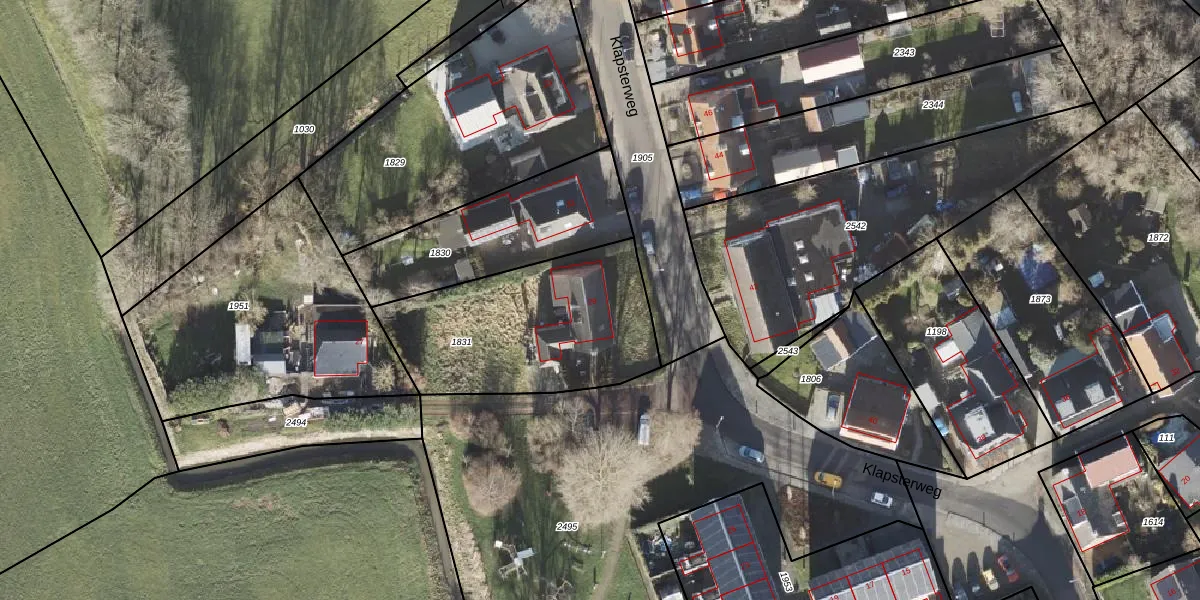 Klapsterweg 29 is gelegen op kadastraal perceel TMT00E1831. Deze kadastrale aanduiding is uniek en wordt gebruikt door het Kadaster om eigendomsrechten en andere zakelijke rechten vast te leggen. Het perceel maakt onderdeel uit van de kadastrale gemeente Termunten.