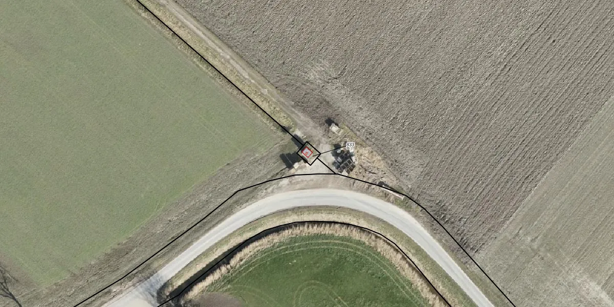 Het adres is gelegen op perceel 833 in de sectie H en de kadastrale gemeente Termunten. De kadastrale aanduiding is aldus TMT00-H-833. Het perceel is kleiner dan gemiddeld in Termunten. Het perceel is 30 m² groot, terwijl het gemiddelde ligt op 1,9 ha. Het grootste perceel in de kadastrale gemeente is 7,43 km². Het kleinste perceel heeft een oppervlakte van 0 m². Er zijn geen andere adressen aanwezig op het perceel. De laatste wijziging in het de Basisregistratie Kadaster (BRK) was op 14-11-1997.