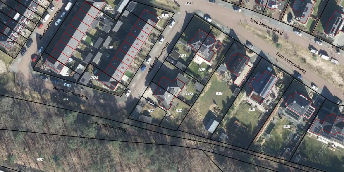 Het perceel waarop Albert Oltmansweg 20 staat heeft een oppervlakte van 405 m². Dit is een groot perceel. De perceeloppervlakte wordt geregistreerd door het Kadaster. Gedetailleerde informatie over de maten van dit perceel kunt u vinden in het rapport Kadastrale kaart met maatvoering van Albert Oltmansweg 20.