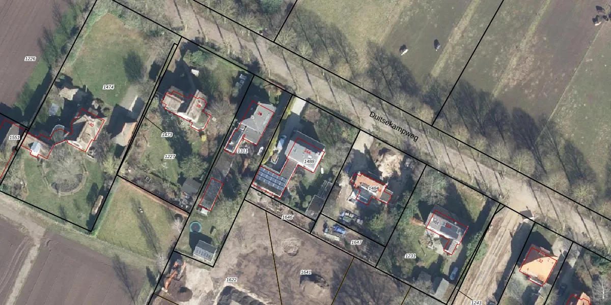 Het perceel waarop Duitsekampweg 34-A staat heeft een oppervlakte van 801 m². Dit is een groot perceel. De perceeloppervlakte wordt geregistreerd door het Kadaster. Gedetailleerde informatie over de maten van dit perceel kunt u vinden in het rapport Kadastrale kaart met maatvoering van Duitsekampweg 34-A.