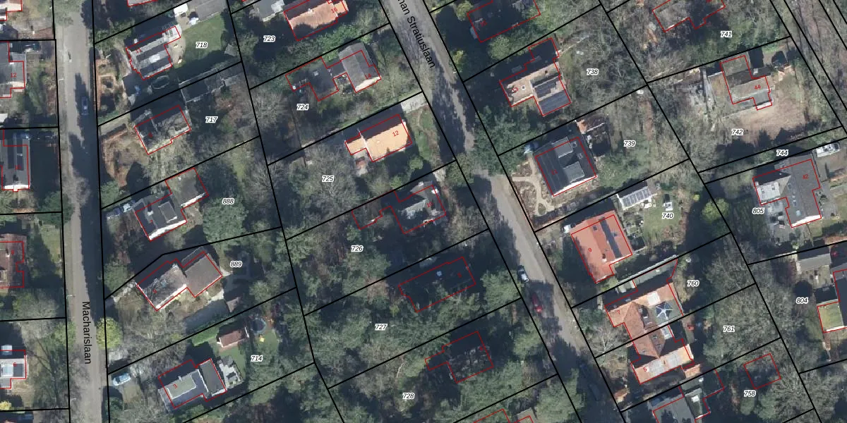 Het perceel waarop Johan Stratiuslaan 10 staat heeft een oppervlakte van 835 m². Dit is een groot perceel. De perceeloppervlakte wordt geregistreerd door het Kadaster. Gedetailleerde informatie over de maten van dit perceel kunt u vinden in het rapport Kadastrale kaart met maatvoering van Johan Stratiuslaan 10.