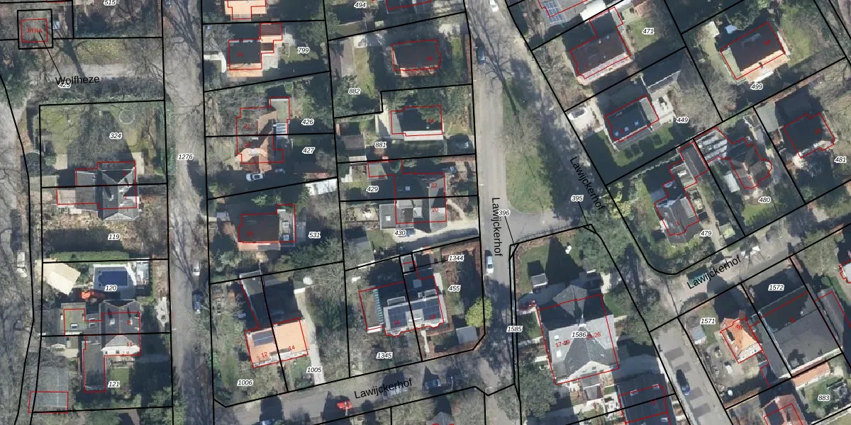 Gebruik de zoekbalk of klik op een perceel voor informatie over de adressen binnen dit perceel.