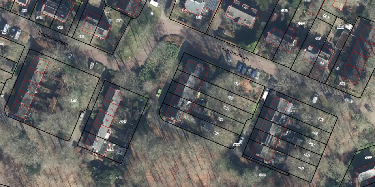 Lindeboomlaan 16 is gelegen op kadastraal perceel OTB00A939. Deze kadastrale aanduiding is uniek en wordt gebruikt door het Kadaster om eigendomsrechten en andere zakelijke rechten vast te leggen. Het perceel maakt onderdeel uit van de kadastrale gemeente Oosterbeek.