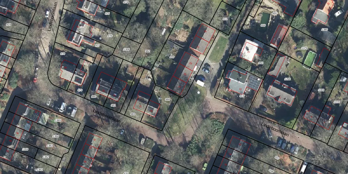 Lindeboomlaan 27 is gelegen op kadastraal perceel OTB00A999. Deze kadastrale aanduiding is uniek en wordt gebruikt door het Kadaster om eigendomsrechten en andere zakelijke rechten vast te leggen. Het perceel maakt onderdeel uit van de kadastrale gemeente Oosterbeek.