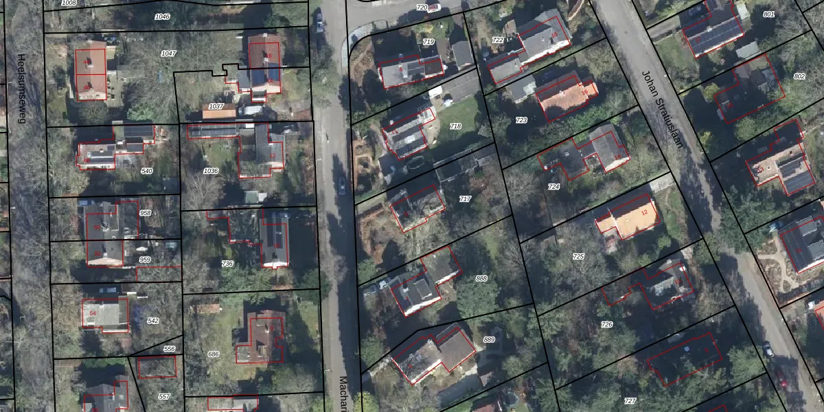 Gebruik de zoekbalk of klik op een perceel voor informatie over de adressen binnen dit perceel.