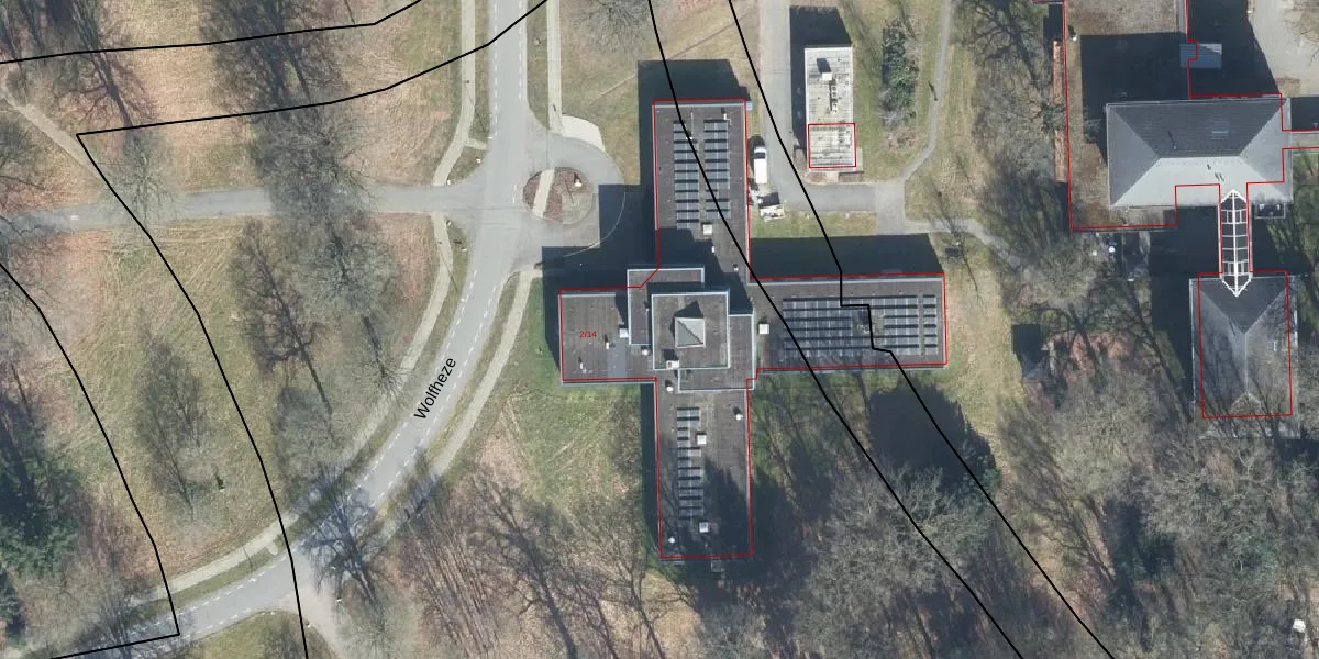 Wolfheze 2-14 is gelegen op kadastraal perceel DWH00A597. Deze kadastrale aanduiding is uniek en wordt gebruikt door het Kadaster om eigendomsrechten en andere zakelijke rechten vast te leggen. Het perceel maakt onderdeel uit van de kadastrale gemeente Doorwerth.