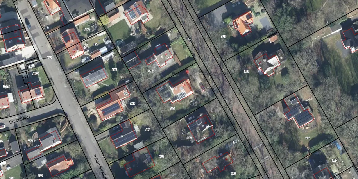 Gebruik de zoekbalk of klik op een perceel voor informatie over de adressen binnen dit perceel.