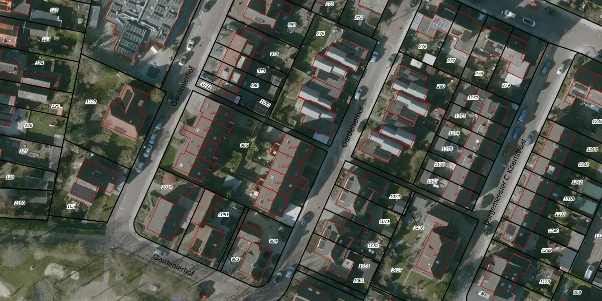 Het perceel waarop Gardenierhof 18 staat heeft een oppervlakte van 1373 m². Dit is een zeer groot perceel. De perceeloppervlakte wordt geregistreerd door het Kadaster. Gedetailleerde informatie over de maten van dit perceel kunt u vinden in het rapport Kadastrale kaart met maatvoering van Gardenierhof 18.