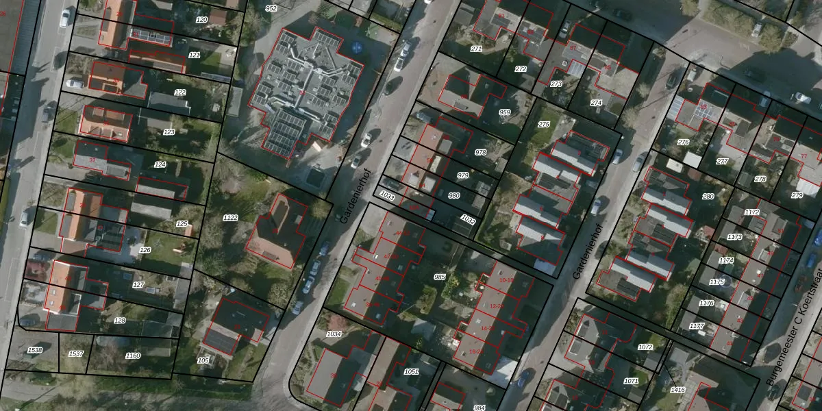 Gardenierhof 52-A is gelegen op kadastraal perceel GOE00AD1033. Deze kadastrale aanduiding is uniek en wordt gebruikt door het Kadaster om eigendomsrechten en andere zakelijke rechten vast te leggen. Het perceel maakt onderdeel uit van de kadastrale gemeente Goes.
