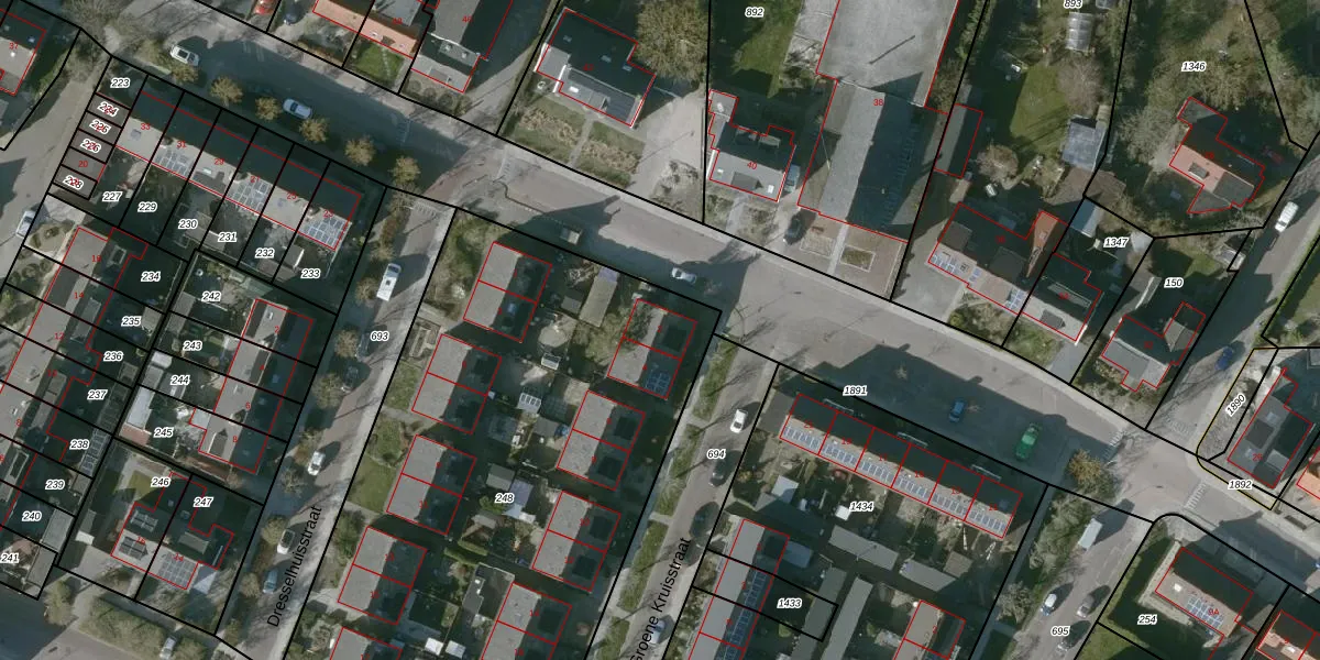 Het perceel waarop Groene Kruisstraat 2 staat heeft een oppervlakte van 3500 m². Dit is een zeer groot perceel. De perceeloppervlakte wordt geregistreerd door het Kadaster. Gedetailleerde informatie over de maten van dit perceel kunt u vinden in het rapport Kadastrale kaart met maatvoering van Groene Kruisstraat 2.