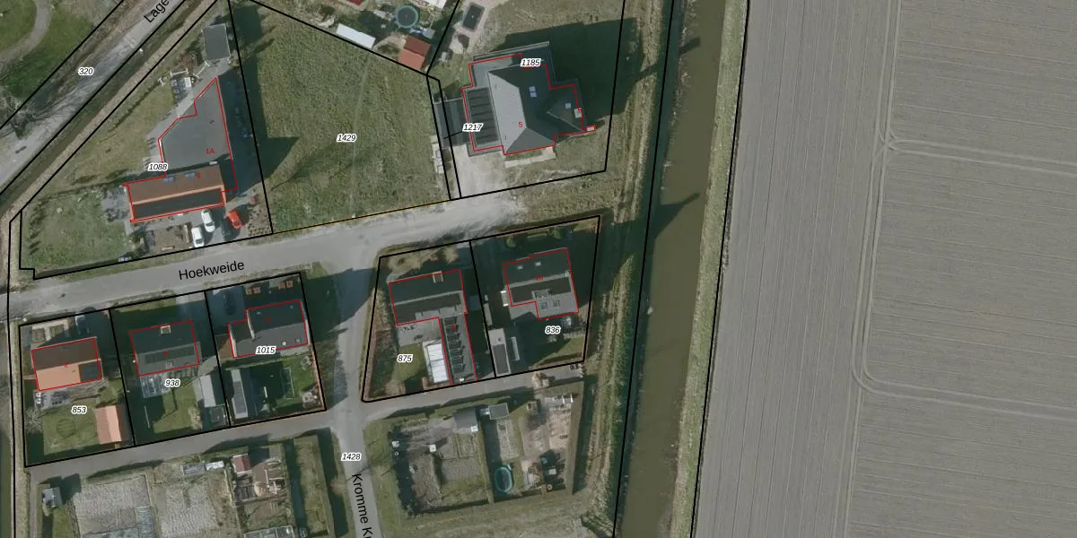 Gebruik de zoekbalk of klik op een perceel voor informatie over de adressen binnen dit perceel.