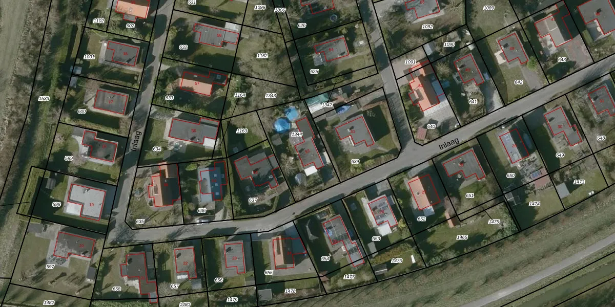 Het perceel waarop Inlaag 52 staat heeft een oppervlakte van 499 m². Dit is een groot perceel. De perceeloppervlakte wordt geregistreerd door het Kadaster. Gedetailleerde informatie over de maten van dit perceel kunt u vinden in het rapport Kadastrale kaart met maatvoering van Inlaag 52.