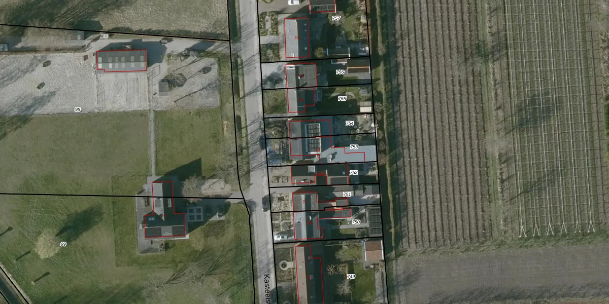 Kasteelstraat 23 is gelegen op kadastraal perceel GOE00AD753. Deze kadastrale aanduiding is uniek en wordt gebruikt door het Kadaster om eigendomsrechten en andere zakelijke rechten vast te leggen. Het perceel maakt onderdeel uit van de kadastrale gemeente Goes.