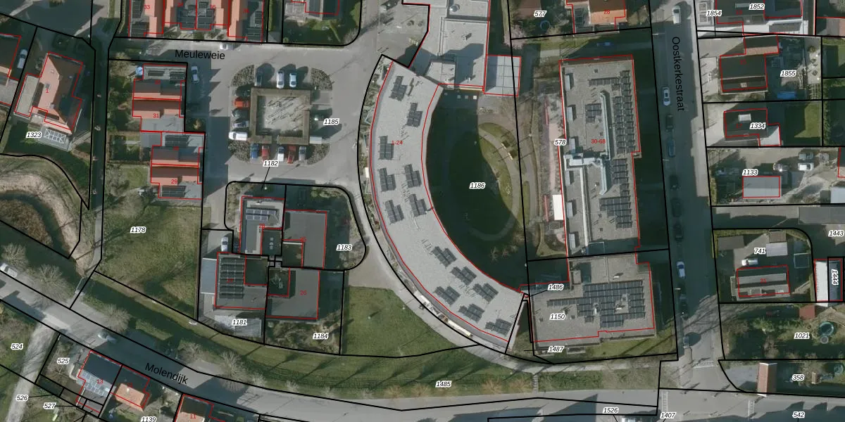 Meuleweie 10 is gelegen op kadastraal perceel GOE00AD1186. Deze kadastrale aanduiding is uniek en wordt gebruikt door het Kadaster om eigendomsrechten en andere zakelijke rechten vast te leggen. Het perceel maakt onderdeel uit van de kadastrale gemeente Goes.