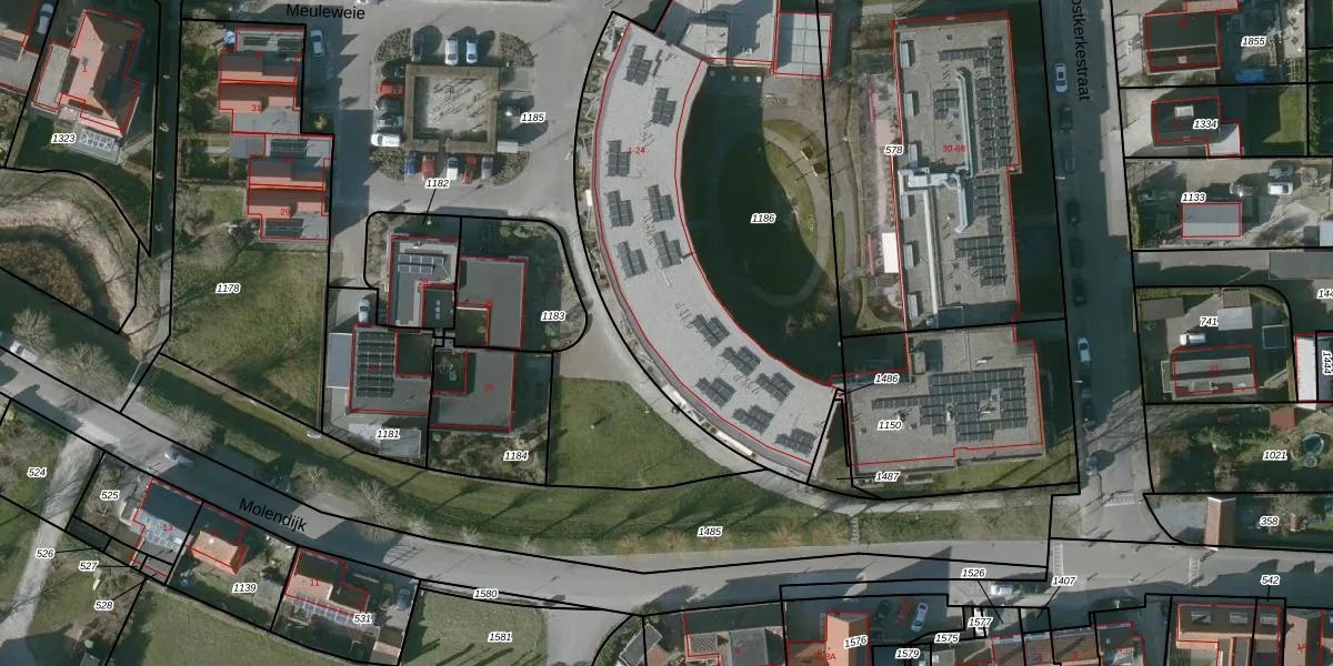 Meuleweie 21 is gelegen op kadastraal perceel GOE00AD1186. Deze kadastrale aanduiding is uniek en wordt gebruikt door het Kadaster om eigendomsrechten en andere zakelijke rechten vast te leggen. Het perceel maakt onderdeel uit van de kadastrale gemeente Goes.