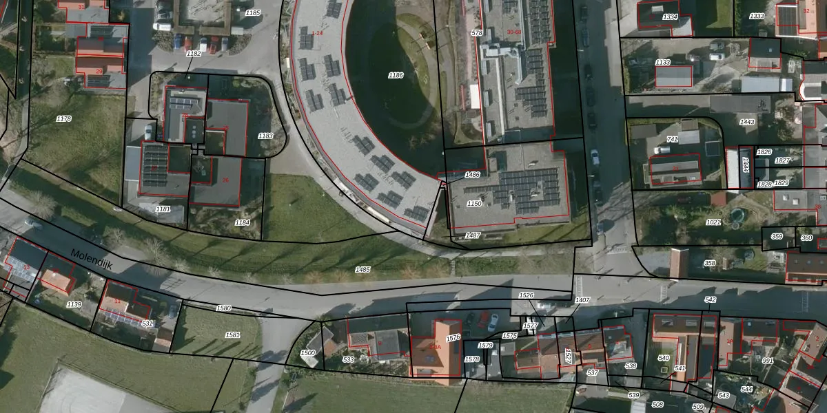 Meuleweie 24 is gelegen op kadastraal perceel GOE00AD1186. Deze kadastrale aanduiding is uniek en wordt gebruikt door het Kadaster om eigendomsrechten en andere zakelijke rechten vast te leggen. Het perceel maakt onderdeel uit van de kadastrale gemeente Goes.