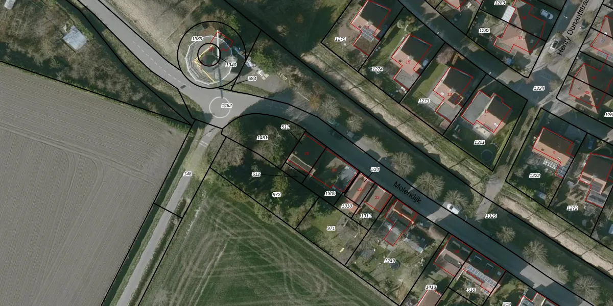 Gebruik de zoekbalk of klik op een perceel voor informatie over de adressen binnen dit perceel.