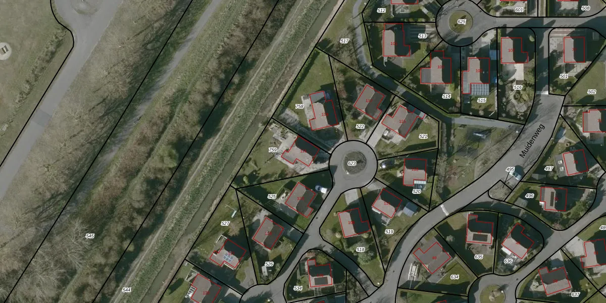 Muidenweg 121 is gelegen op kadastraal perceel GOE00AE759. Deze kadastrale aanduiding is uniek en wordt gebruikt door het Kadaster om eigendomsrechten en andere zakelijke rechten vast te leggen. Het perceel maakt onderdeel uit van de kadastrale gemeente Goes.