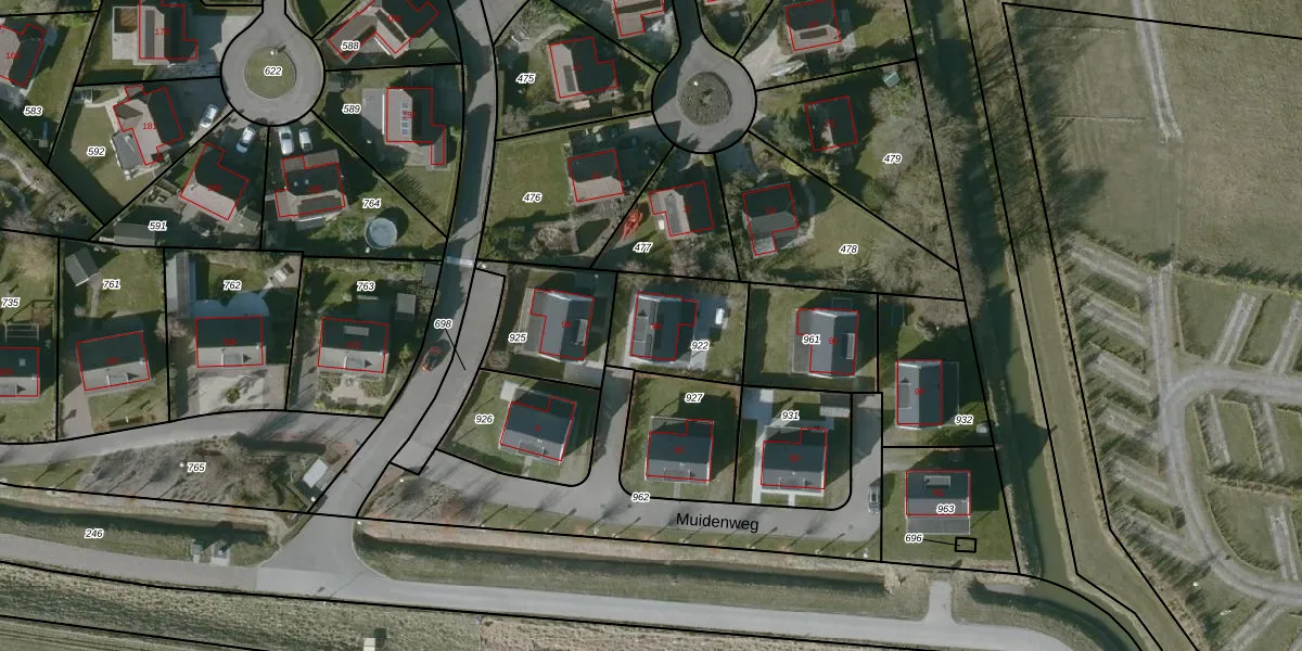 Muidenweg 9-B is gelegen op kadastraal perceel GOE00AE922. Deze kadastrale aanduiding is uniek en wordt gebruikt door het Kadaster om eigendomsrechten en andere zakelijke rechten vast te leggen. Het perceel maakt onderdeel uit van de kadastrale gemeente Goes.