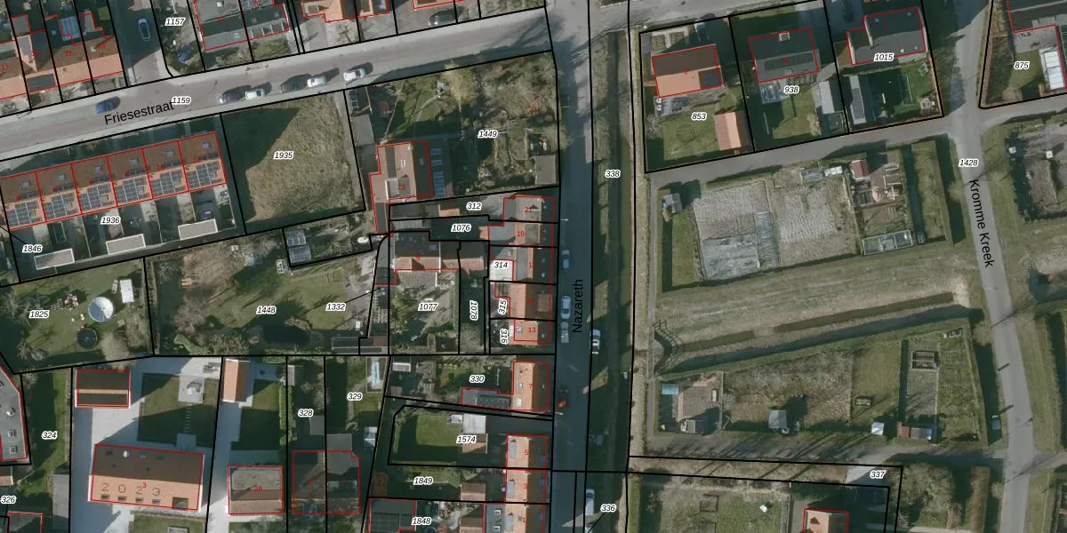 Het perceel waarop Nazareth 17 staat heeft een oppervlakte van 101 m². Dit is een middelgroot perceel. De perceeloppervlakte wordt geregistreerd door het Kadaster. Gedetailleerde informatie over de maten van dit perceel kunt u vinden in het rapport Kadastrale kaart met maatvoering van Nazareth 17.