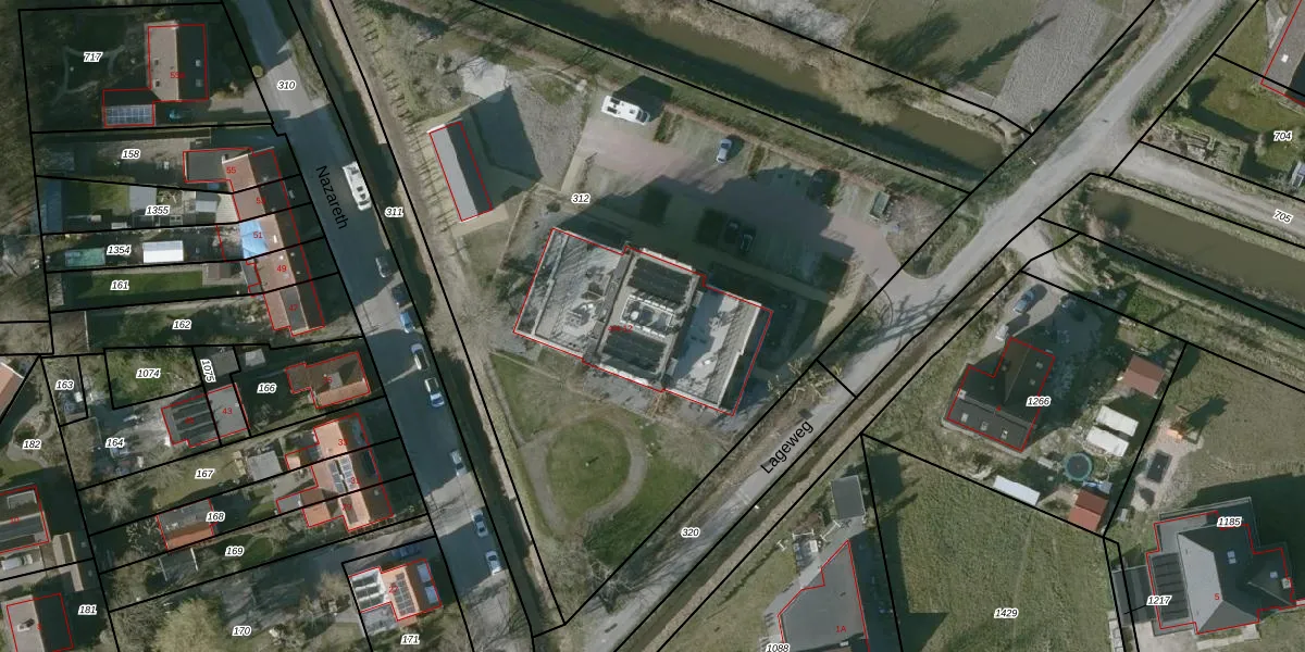Het perceel waarop Nazareth 4-01 staat heeft een oppervlakte van 4560 m². Dit is een zeer groot perceel. De perceeloppervlakte wordt geregistreerd door het Kadaster. Gedetailleerde informatie over de maten van dit perceel kunt u vinden in het rapport Kadastrale kaart met maatvoering van Nazareth 4-01.