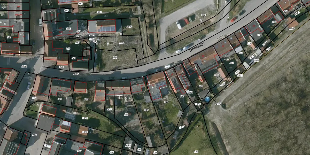 Het perceel waarop Noorddijk 12 staat heeft een oppervlakte van 567 m². Dit is een groot perceel. De perceeloppervlakte wordt geregistreerd door het Kadaster. Gedetailleerde informatie over de maten van dit perceel kunt u vinden in het rapport Kadastrale kaart met maatvoering van Noorddijk 12.