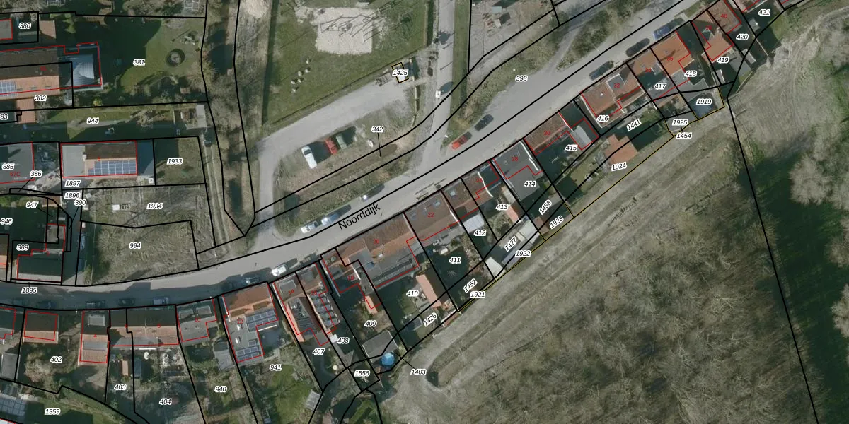 Noorddijk 22 is gelegen op kadastraal perceel GOE00AD411. Deze kadastrale aanduiding is uniek en wordt gebruikt door het Kadaster om eigendomsrechten en andere zakelijke rechten vast te leggen. Het perceel maakt onderdeel uit van de kadastrale gemeente Goes.