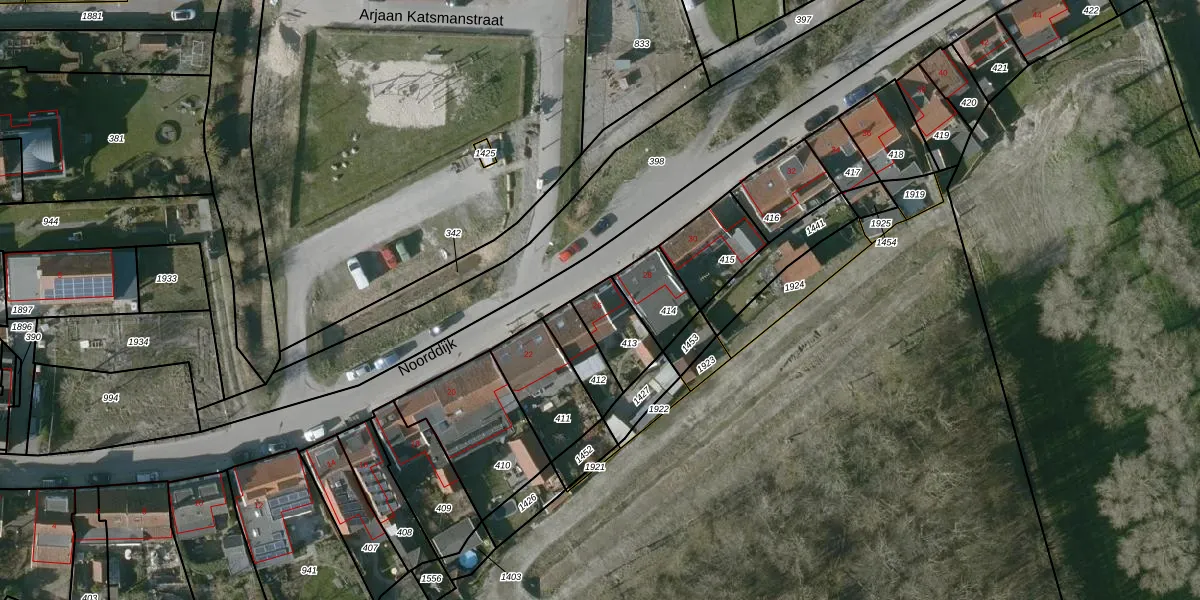 Noorddijk 26 is gelegen op kadastraal perceel GOE00AD413. Deze kadastrale aanduiding is uniek en wordt gebruikt door het Kadaster om eigendomsrechten en andere zakelijke rechten vast te leggen. Het perceel maakt onderdeel uit van de kadastrale gemeente Goes.