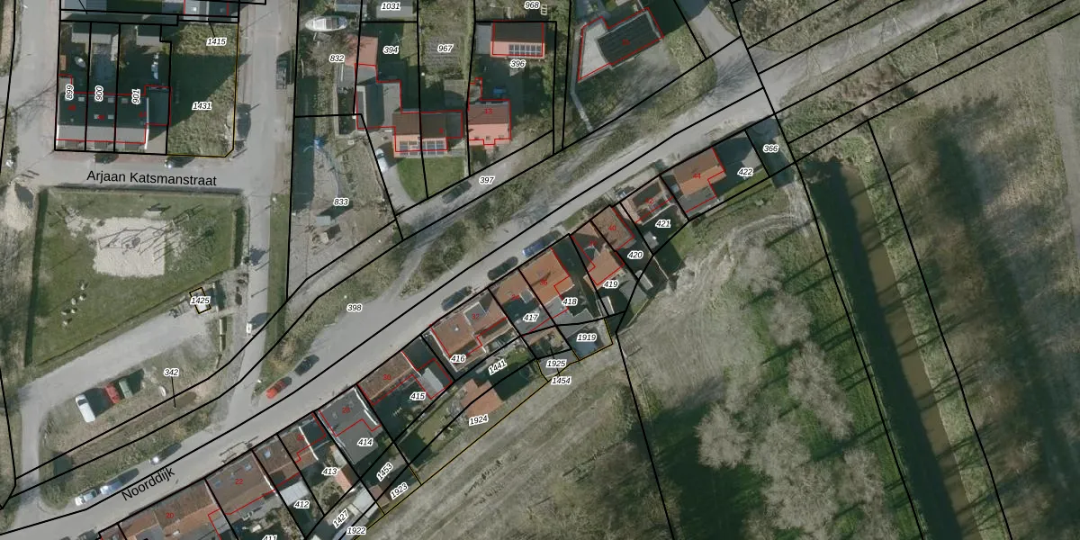 Noorddijk 36 is gelegen op kadastraal perceel GOE00AD418. Deze kadastrale aanduiding is uniek en wordt gebruikt door het Kadaster om eigendomsrechten en andere zakelijke rechten vast te leggen. Het perceel maakt onderdeel uit van de kadastrale gemeente Goes.